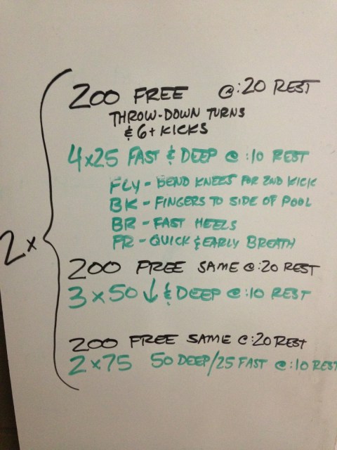 This was a little technique/focus set we worked on the other day. “Deep” practice refers to our intent to be totally engaged in our stroke and focused on improving one particular part of the stroke while swimming (not drilling or isolating).