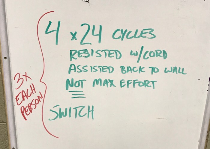 We did this set to allow us to swim more cycles consecutively than we usually get to do in our 25m pool. The 4 x 24 cycles are done with only the return to the wall as rest. We used stretch cordz held by a partner standing on the pool deck.