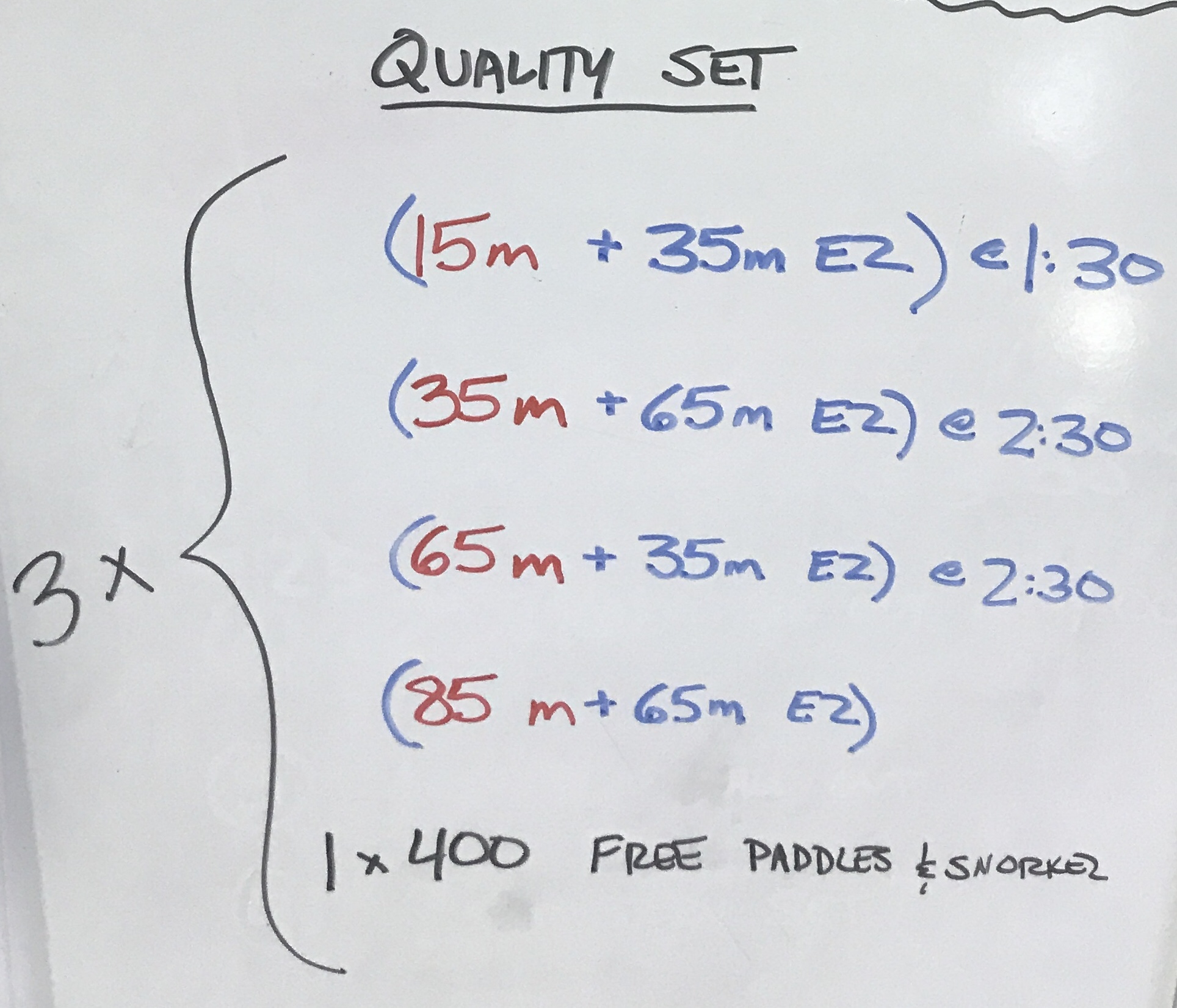 The instructions matched the intervals – the IM swims descend to an all-out 400 IM. The freestyles start off with a very strong 400 free and ascend to a smooth 100.