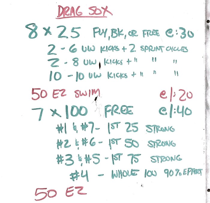 This one is simple and could be changed around but it turned out really well. The fly 25’s turned out to be more of a kick set than swim.