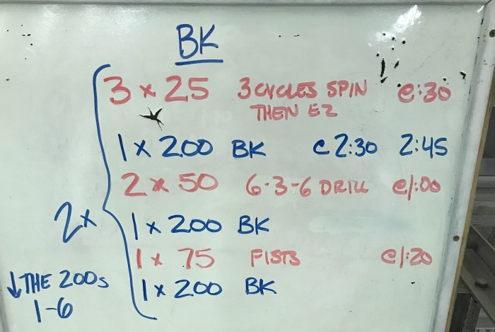 3 x 200 @ 2:40 50 FR / 50 BK / 50 BR / 50 FR