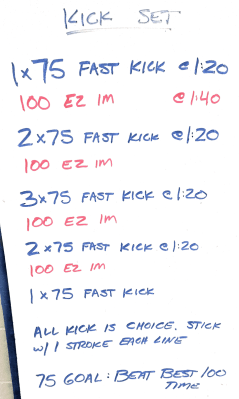 This was an effort to help some of our swimmers “figure out” the 200 free.  We followed up with a set specifically designed to practice for this event.  That set will come in a later post.