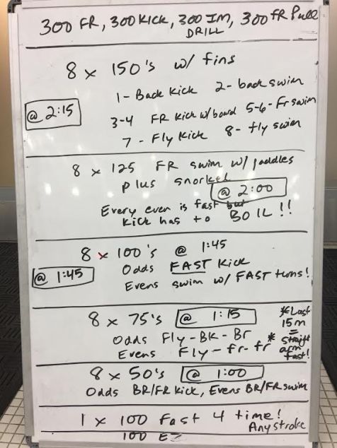 3 x 300 IM @ 4:00 (100 BK, BR, FR)