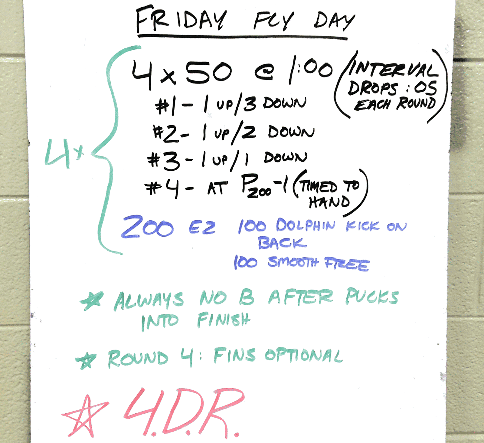 4×125 fins 100 free descend 25 prime fast on 1:55