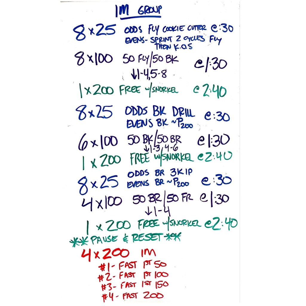 75 – on 1:15 4 dolphin kicks off first wall, 6 on 2nd, 8 on 3rd