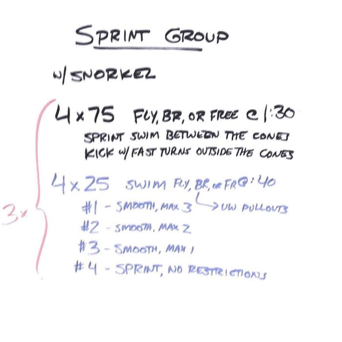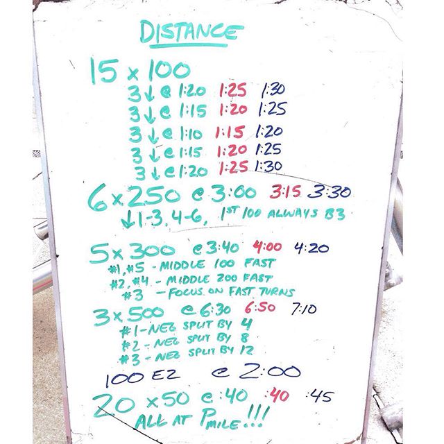 This set got great reviews at practice and awesome efforts. Intervals should be kept so that the set stays Aerobic, but enough rest to really get moving fast.