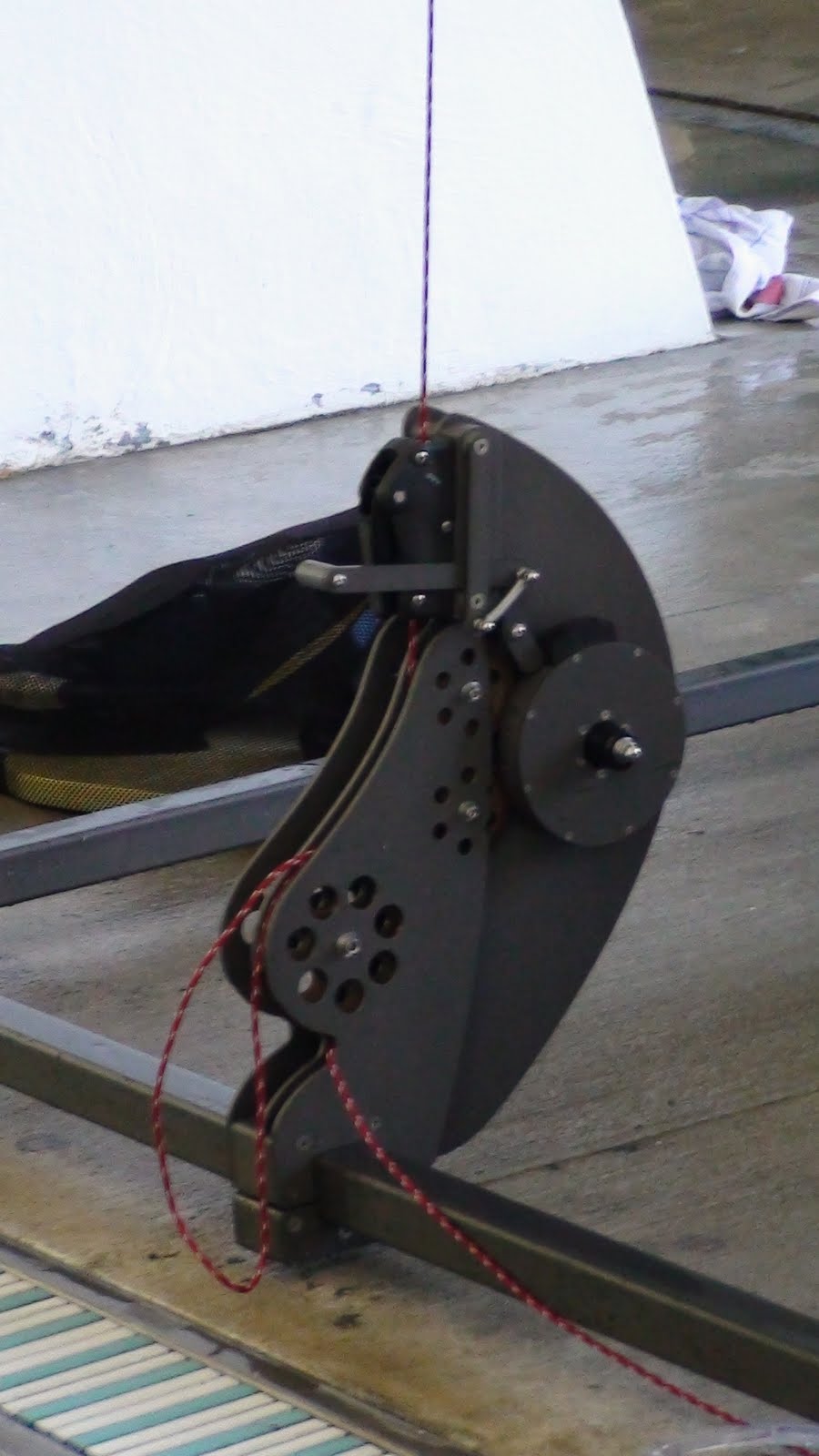 3) There is an Inertia Safety Clutch built into the lower pulley system. This comes in handy if the belt happens to come off, and it can also be manually locked if you are 50m away and simply want to rest without clinging to the wall.