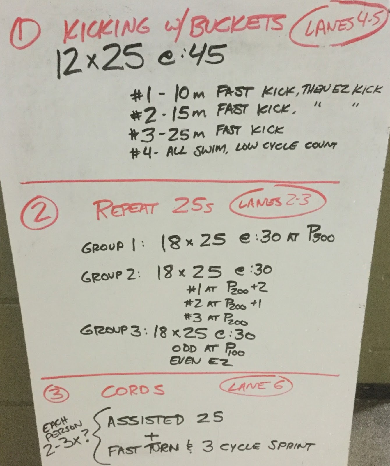 Sunday I was at the pool in Huntersville, NC for our Senior Champs and watched Nick Brunelli training on this beast. I had been looking at it sitting in the corner all weekend, wondering if it really was what it seemed. It’s a Power Tower on steroids, with the capability of providing assistance or resistance over 50 meters. Brunelli was eager to tell me about it when I asked. Apparently there are only 3 in existence right now–this one, one in Fullerton, CA with Sean Hutchison’s Center of Excellence group, and one at Arizona State (Brunelli’s alma mater and the home of the inventor). Brunelli said that it is vastly improved over the Power Rack, Power Reel, and Power Tower for a few reasons: