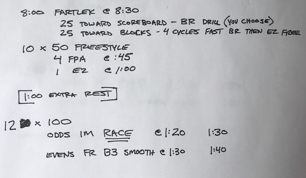 The structure of this set allowed us to have maximum flexibility within our lanes without interval pressure causing poor technique. And we got some great results on the SURPRISE 100!!!