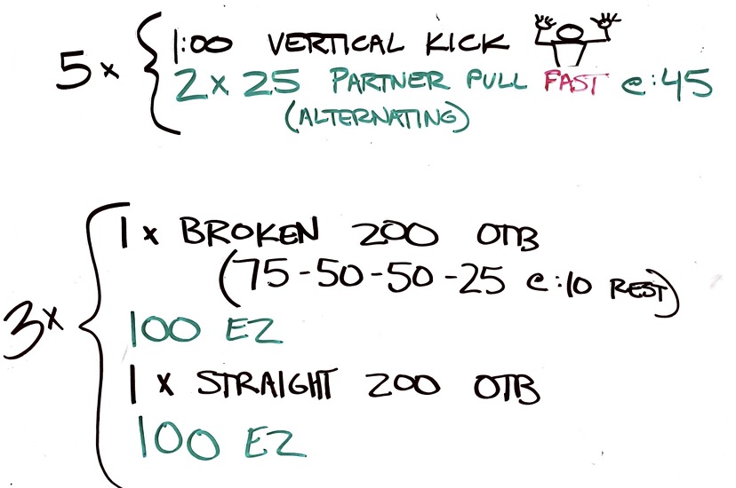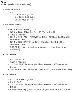 Pre and Quality – Set we did 2 times – 1 in Stroke (not Free) and 1 in Second Stroke/Free or IM.