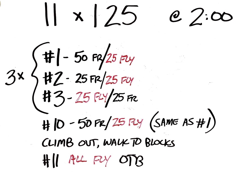 Instructions were to go fast on all the fly efforts…some had to build in order to finish each effort fast, others had to go shorter distances of fly