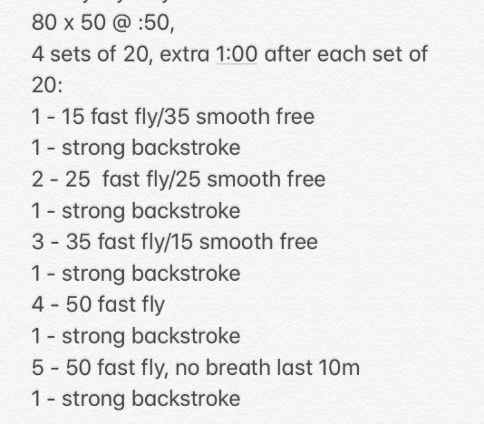 This set was intended to help swimmers hold their fly technique under fatigue.