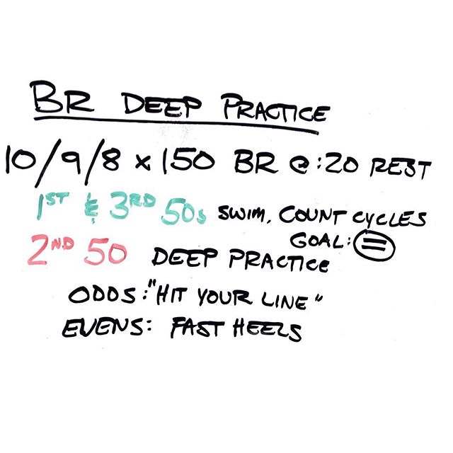 “Deep Practice” is a concept we use to denote whole-stroke swimming while maintaining a very specific focus on an aspect of the stroke. The list at the bottom was our brainstormed list of freestyle deep practice possibilities.