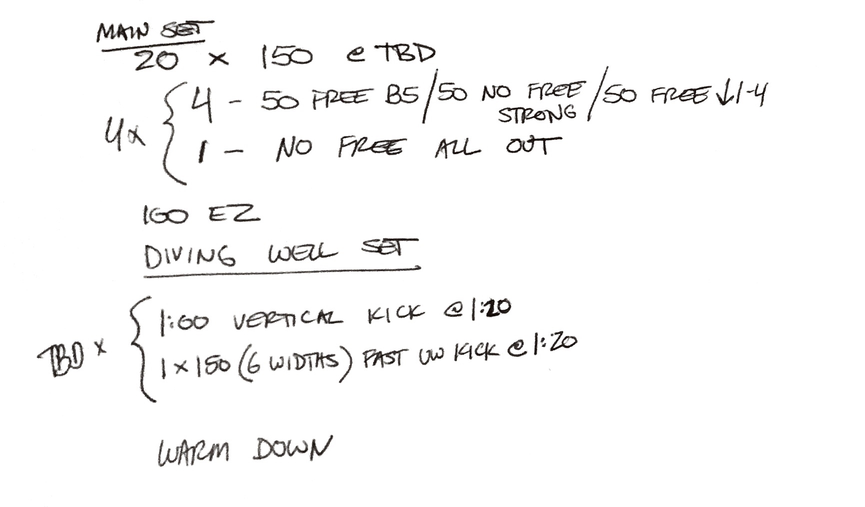 We did this set 6x through after a tough main set, and the kids did well with the underwaters especially. With 4 people in each lane, one person was on each part.