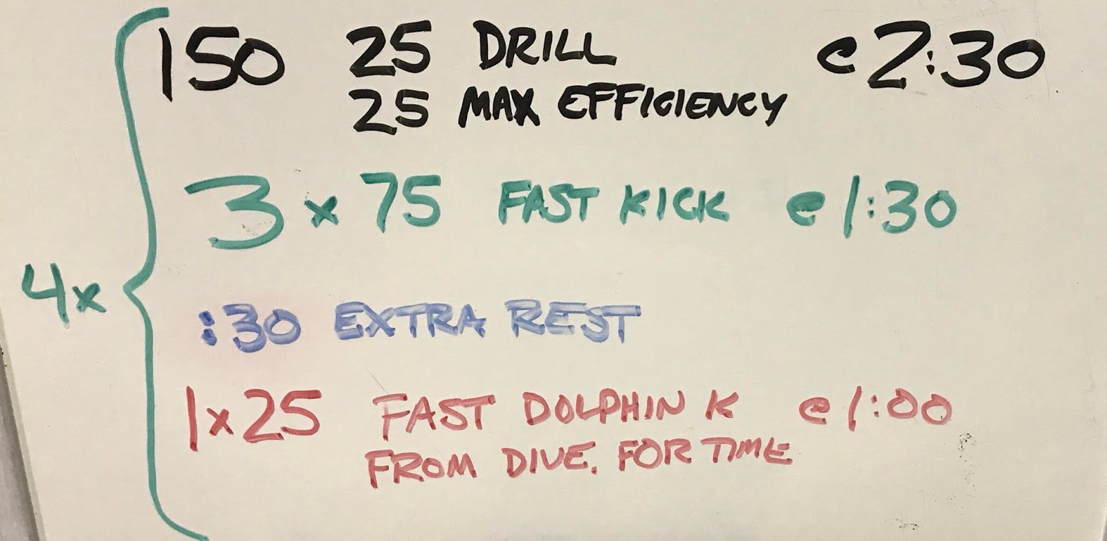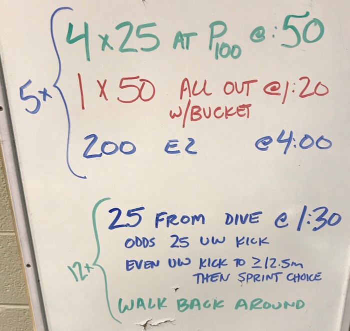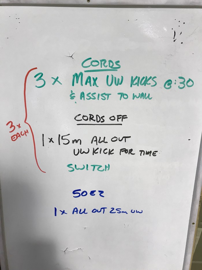 Swim 1 x 200 Free > Goal Time for 200 Free LC minus 3 – 6) They have fins on!