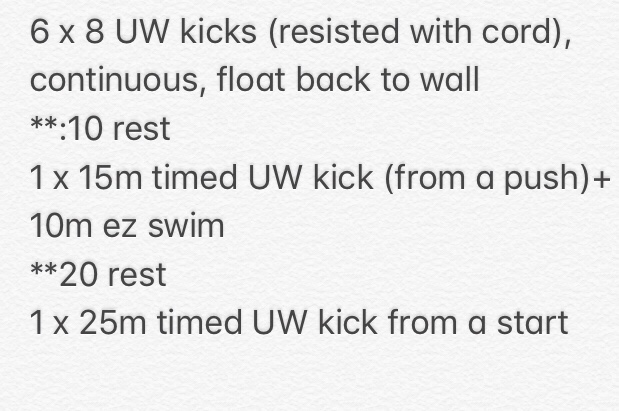 1 6 dolphins – 3 strokes Fly – if not at wall back under water and work finish.