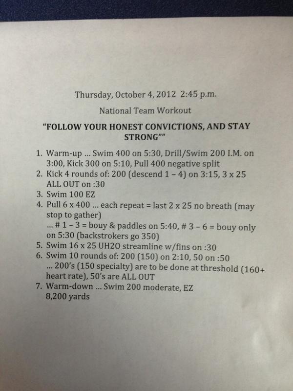 Here’s my workout today! Total: 10,200 yards. http://pic.twitter.com/RaEtzC26