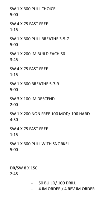 I always drill at the end of practice. I believe doing good drills at the end of practice will help hold strokes together at the end of a race.