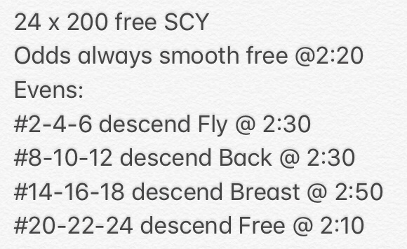 That’s an exact quote from one of our swimmers upon seeing this workout. They did a nice job with this one. SCY