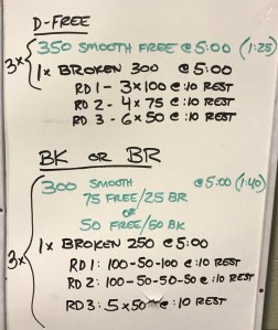 We had our backstroke/freestylers (both sprint and distance) do this set recently. Most liked it and said they felt smooth and strong during the set. This was good news as we did this set before we performed the Race Pace Set for Well-Oiled (Team) Machine.