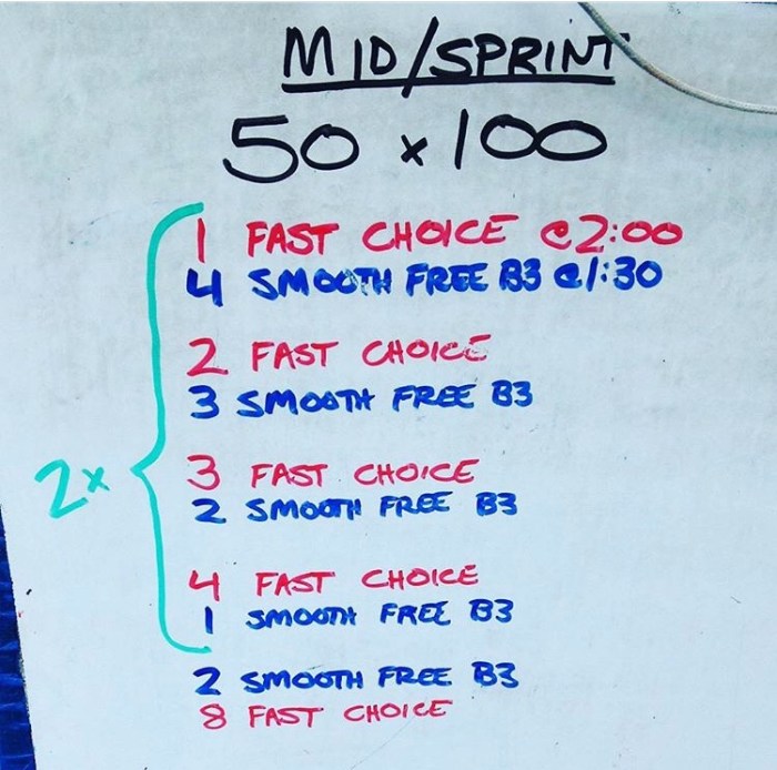#91-95 50 kick/50 swim on 1:50/2:00/2:15