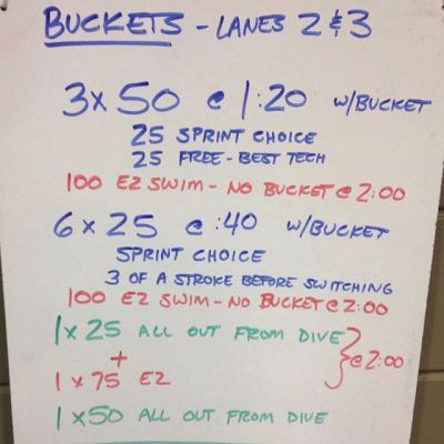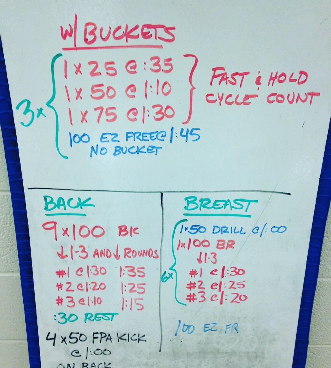I stole this idea from somewhere– I just can’t remember where. Cone kicks are performed by placing a medium-sized traffic cone over the front end of the swimmer’s streamline (make sure the cone is not big enough to come down over the swimmer’s face). This serves two purposes: