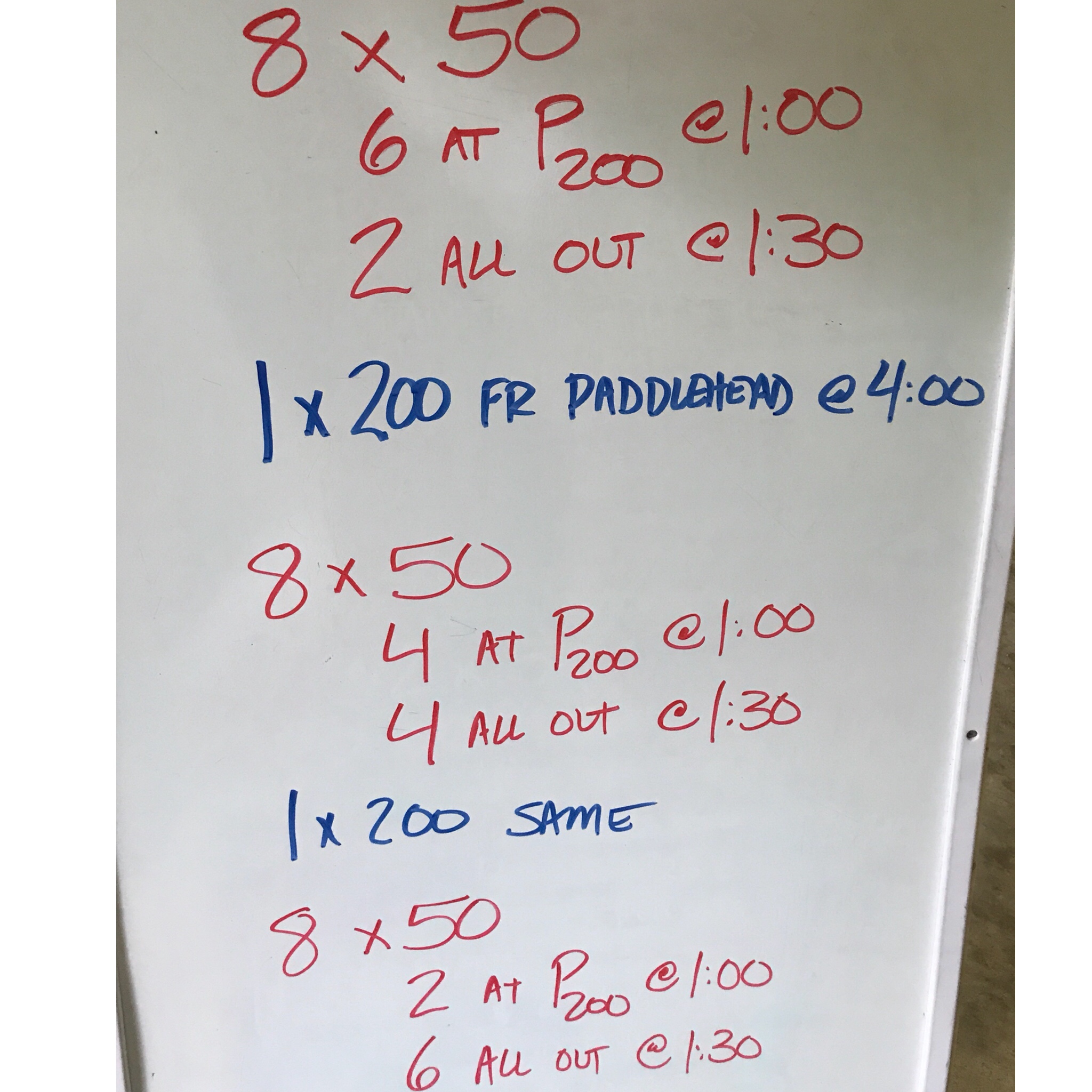 Did some fast swimming on this one. In each set, we performed some 50s at 200 pace and then followed it up with some “all-out” 50s, unleashing our performance from the mental constraints of “race pace.”