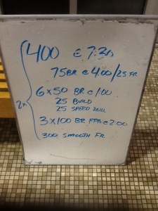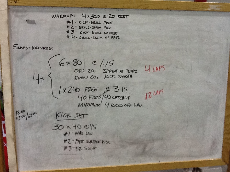 The 200s provided a solid aerobic touch to the training, and we’ve been really struggling with pullout discipline later in races, thus the no touch walls to put some extra pressure on the lungs on those underwaters.