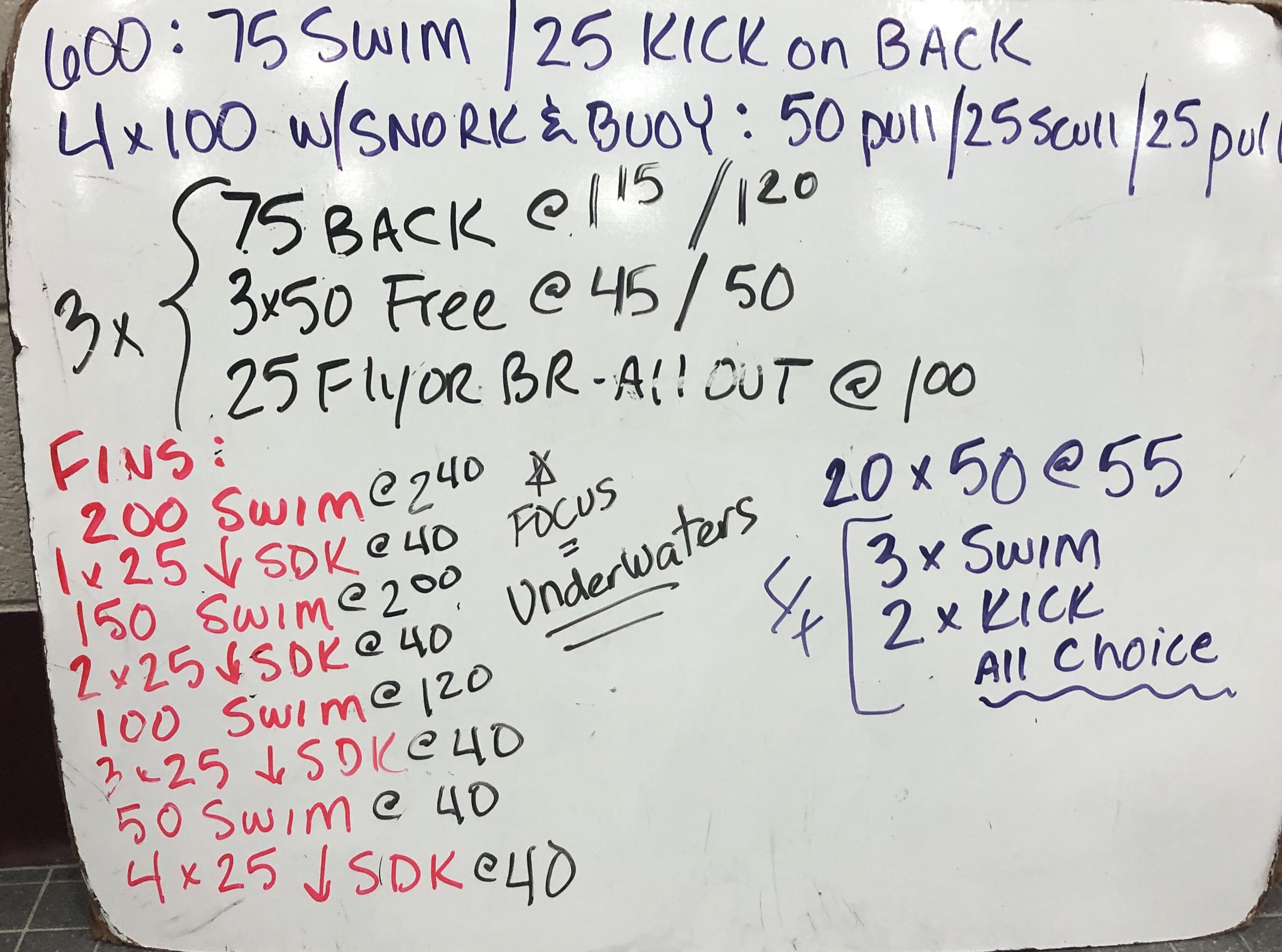We had a small amount of time left after our main set today and we had to squeeze into three lanes. We got it a little good work in on our underwater dolphin kicks with this simple set.