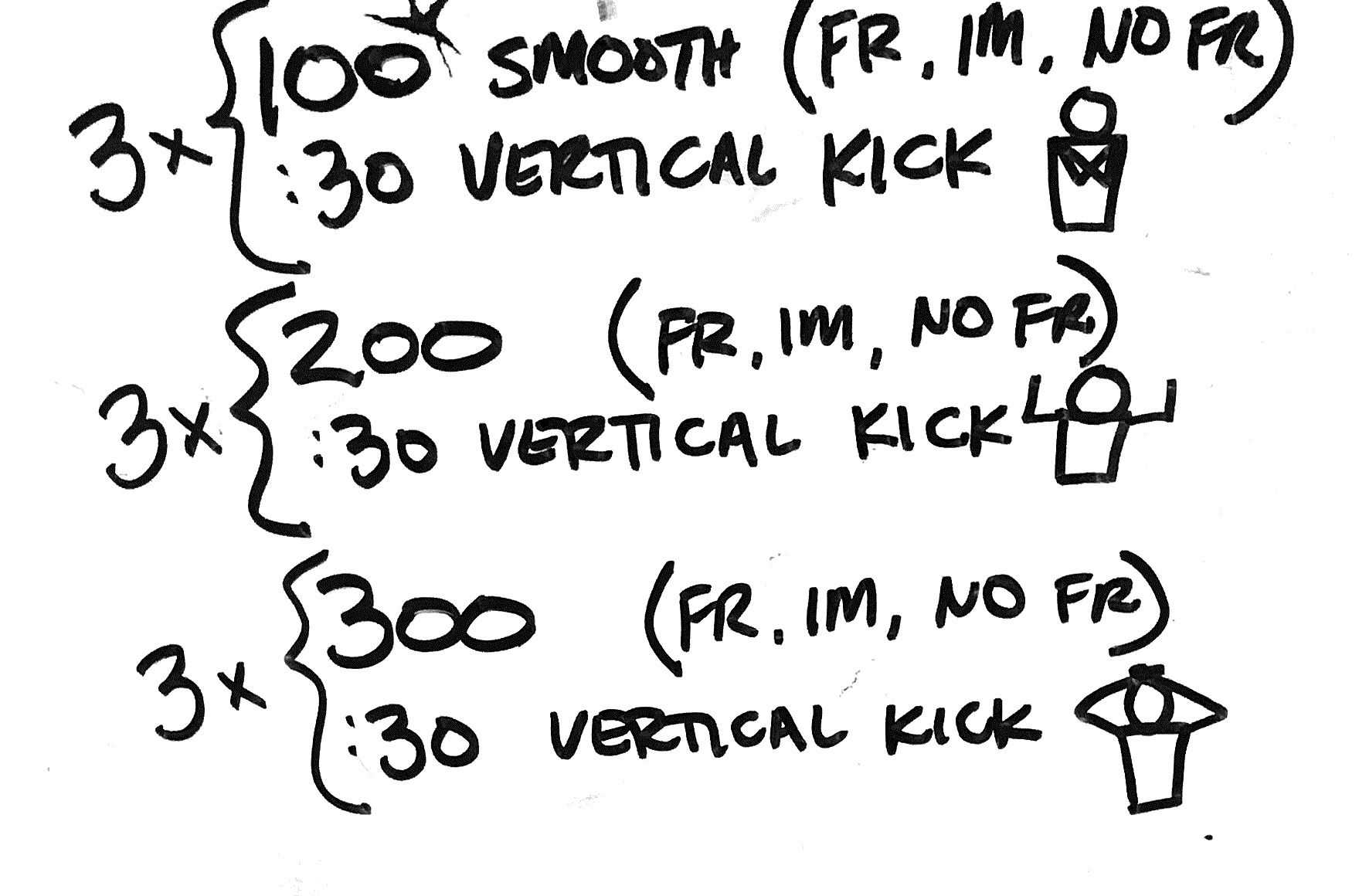 – 300 kick @ 5:00 strong with board